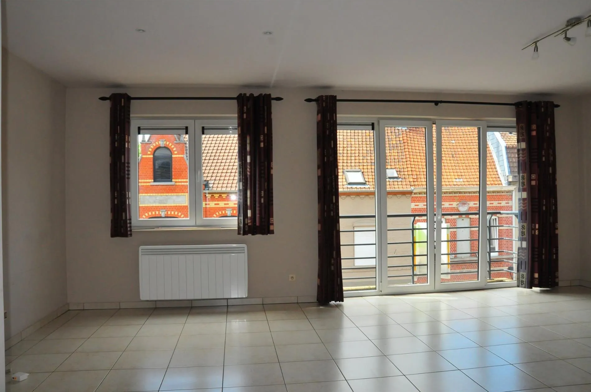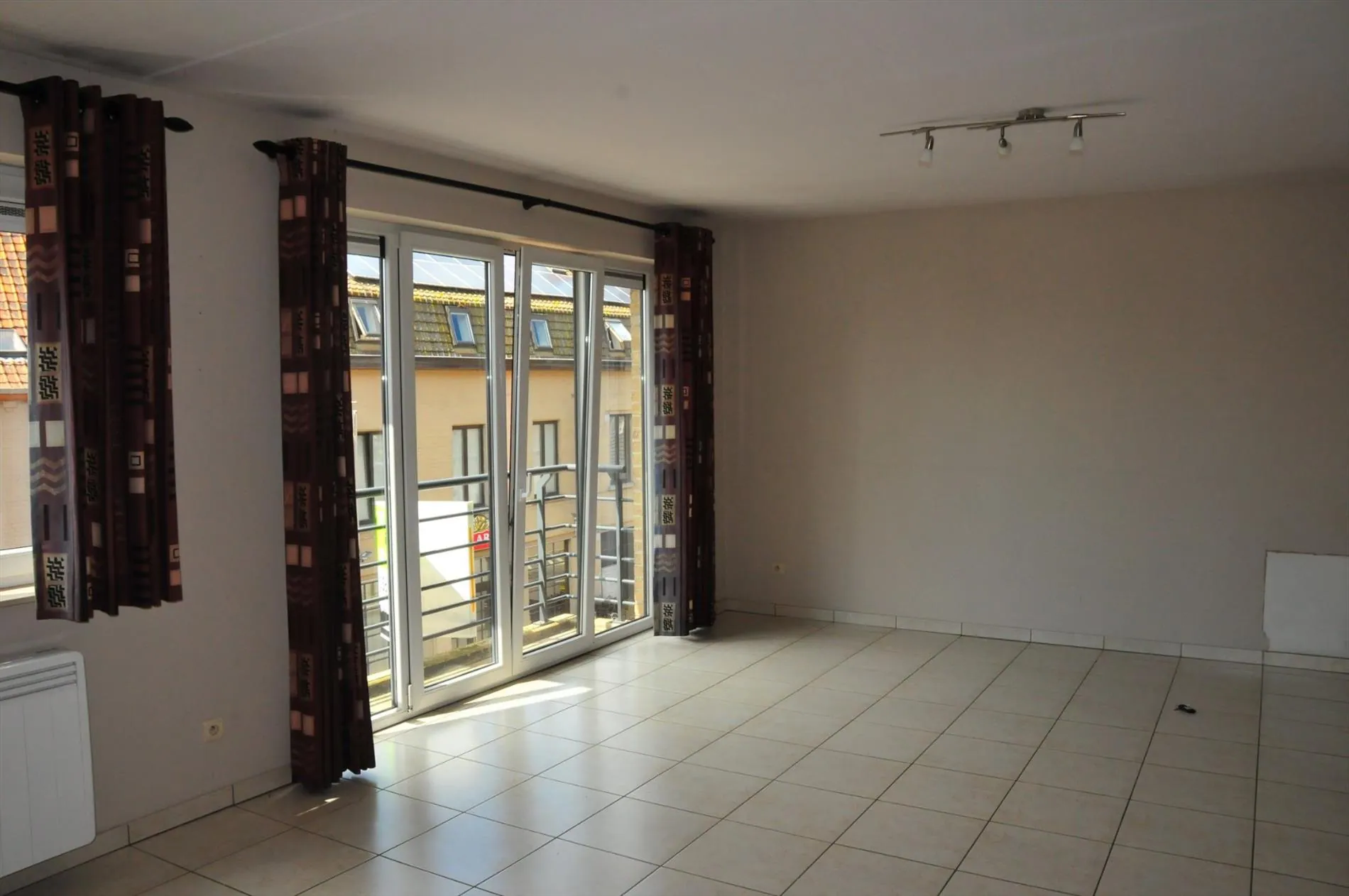 Grote living met balkon en open ingerichte keuken. Berging voorzien naast de keuken.