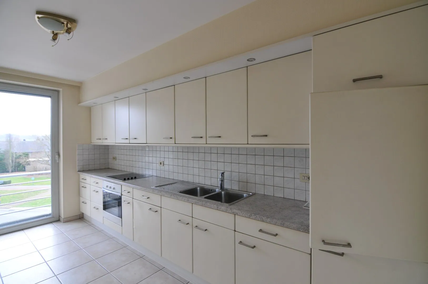 Dit appartement is gelegen in het centrum van Avelgem, op wandelafstand van alle nodige handelszaken. Het appartement heeft 2 slaapkamers, een mooie woonkamer, een aparte ingerichte keuken, een badkamer en een berging. Vooraan een balkon en achteraan een ruim terras. Op het gelijkvloers is een fietsenberging en een garage voorzien. Het zicht op de Kluisberg is subliem.