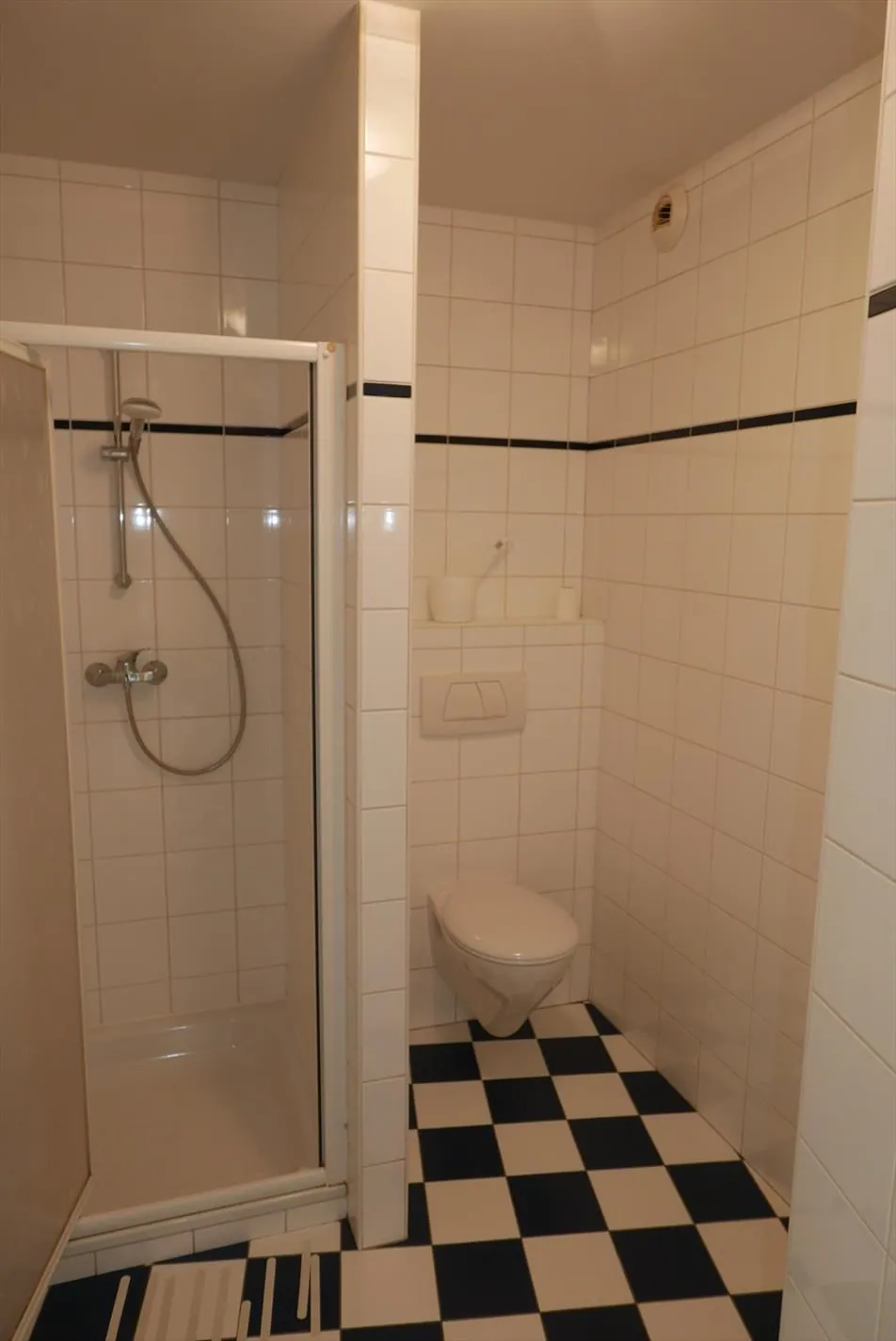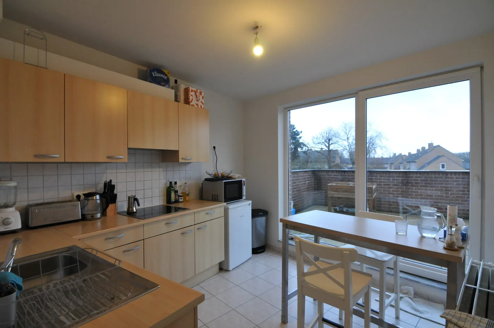 Mooie living, nieuwe keuken, badkamer met douche, lavabo en wc.