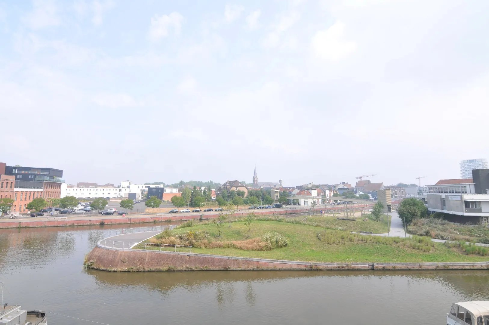 De open voorzijde met drie grote ramen geeft uit op de Leie.