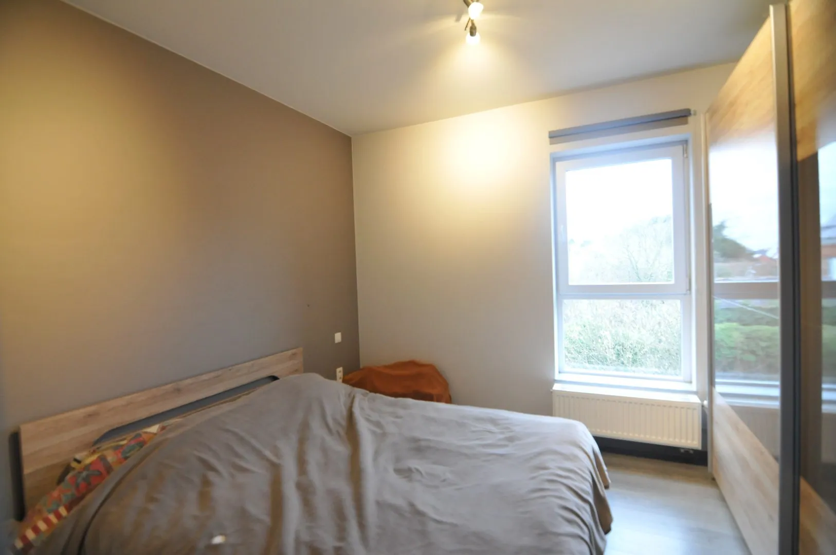 Het pand bestaat uit een inkomhal met apart toilet, 2 slaapkamers, een ruime living met toegang tot het terras, een berging en een open keuken ingericht met alle nodige toestellen. Het geheel voldoet aan de laatste isolatienormen waardoor een laag verbruik gegarandeerd is.