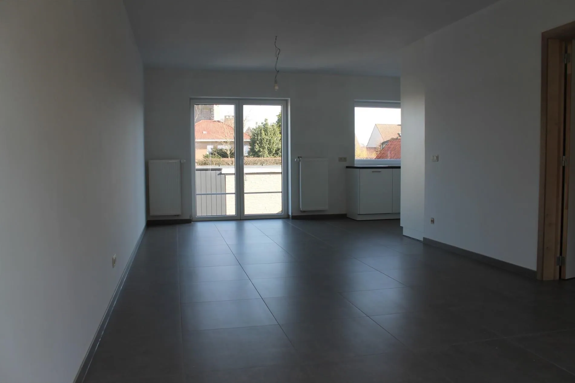 Deze woning bestaat, op het gelijkvloers, uit een garage met ruime berging en op heet eerste verdiep een ruime woonkamer met open keuken. Op de tweede verdieping vinden we 2 slaapkamers en een badkamer met douche en bad. Een gezellige tuin met terras is voorzien achteraan de woningen. Regenwater is aanwezig en alles is voorzien op energie zuinig verbruik. Topper!