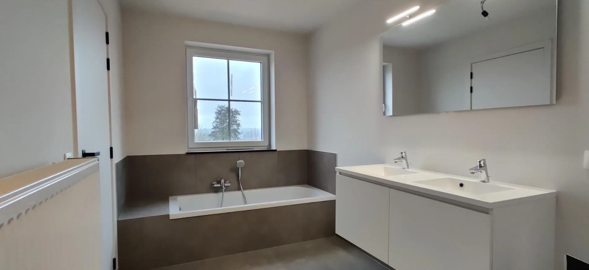 Deze prachtige nieuwbouwwoning is gelegen op de top van een berg in een kleine, rustige nieuwe verkaveling. Het huis zelf is tot in de puntjes afgewerkt met mooie en duurzame materialen. De ruime woonkamer heeft veel lichtinval en zicht op tuin en terras die toegankelijk zijn via een groot schuifraam. De naastgelegen open keuken is voorzien van alle comfort en toestellen. De garage is groot genoeg voor een wagen en meerdere fietsen. Bijkomende parkeerplaatsen zijn in de straat te vinden. Op de verdieping bevinden zich 3 slaapkamers en een badkamer met ligbad en douche. Op de tweede verdieping bevindt zich een grote vierde slaapkamer opgedeeld in 2 stukken zodat een gedeelte ook nog als bergruimte/zolder kan gebruikt worden. De tuin is volledig aangeplant.