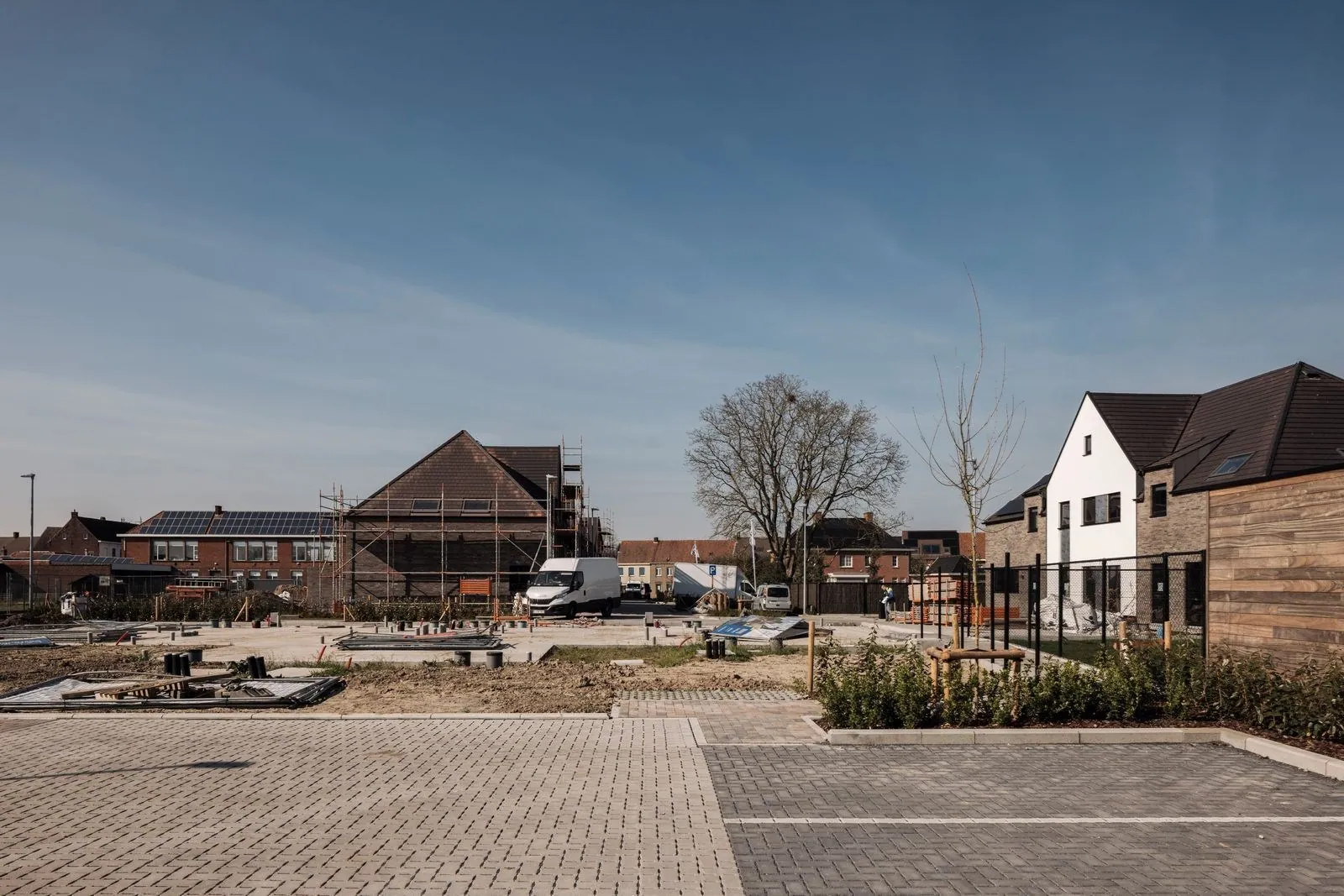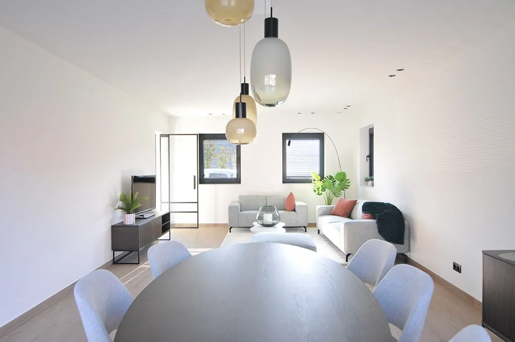 Het project omvat 17 moderne nieuwbouwwoningen (halfopen en gesloten bebouwing), harmonieus ingeplant rond een charmante centrale villa met 6 extra wooneenheden. Elke woning wordt opgetrokken met hoogwaardige materialen en ontworpen met een sterke focus op energiezuinig en toekomstgericht wonen: uitstekende isolatie, warmtepomp, regenwaterrecuperatie en een lage ecologische voetafdruk.